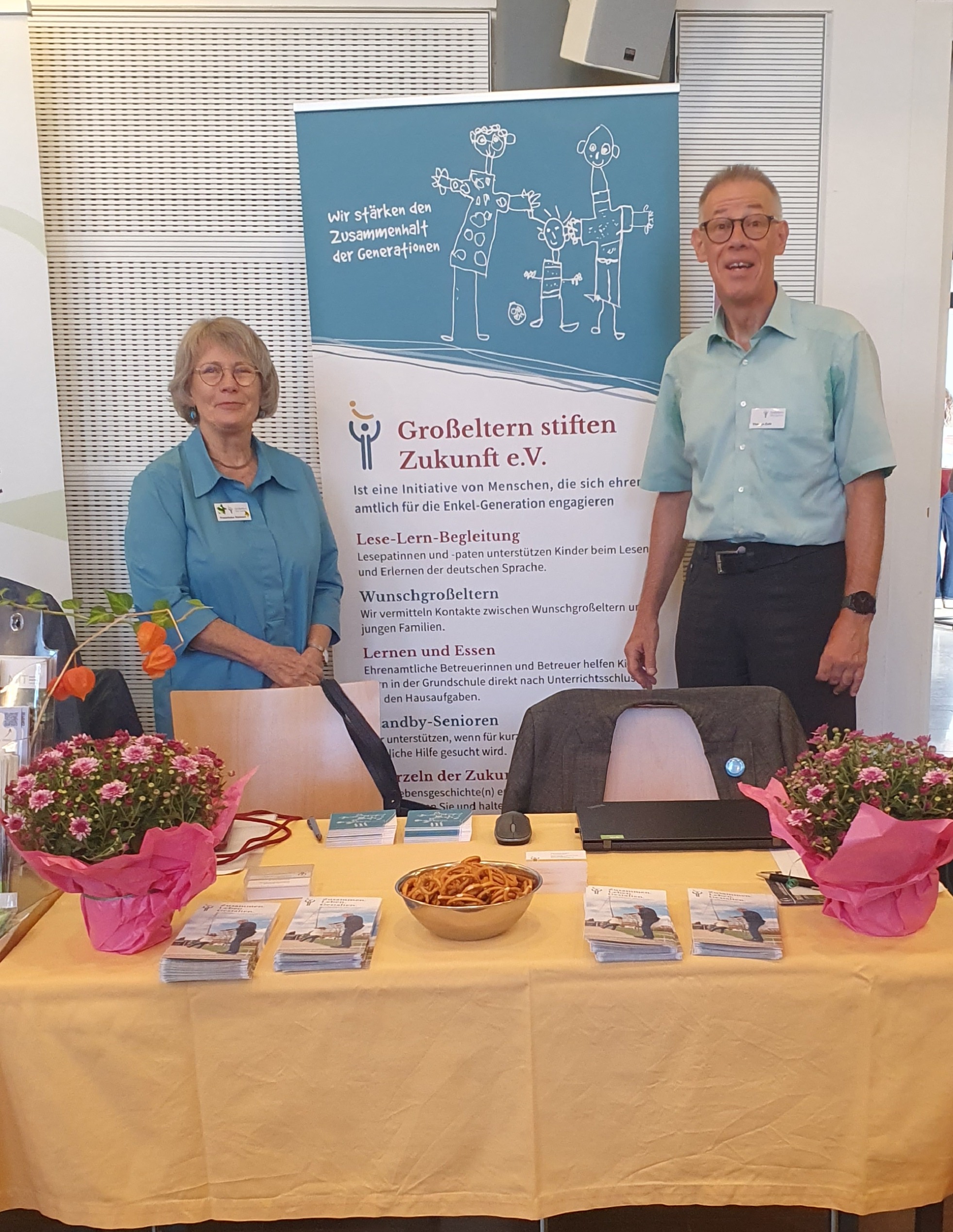 Im September 2025 war unser Verein „Großeltern stiften Zukunft e.V.“ auf der Nürnberger Freiwilligenmesse vertreten. Der 1.Vorsitzende, Thomas Zuhr und Franziska Haimerl, 2. Vorsitzende und Projektleitung „Lesepaten“ waren vor Ort. Wir repräsentierten den Verein und führten zahlreiche Gespräche mit interessierten Besucherinnen und Besuchern.